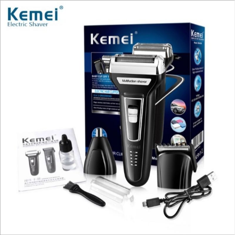 kemei เครื่องโกนหนวด /ตัดผม /ขนจมูกไร้สายไฟฟ้า 3in1 แบบ USBชาร์จ รุ่นKm-6559