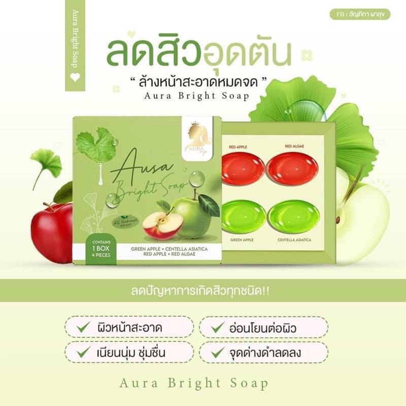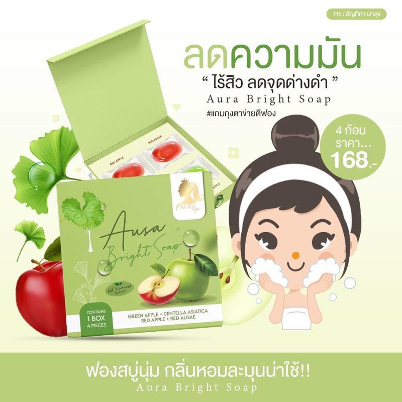 [สบู่หน้า] Aura bright Soap สบู่ออร่าไบร์ท มี 4 ก้อน