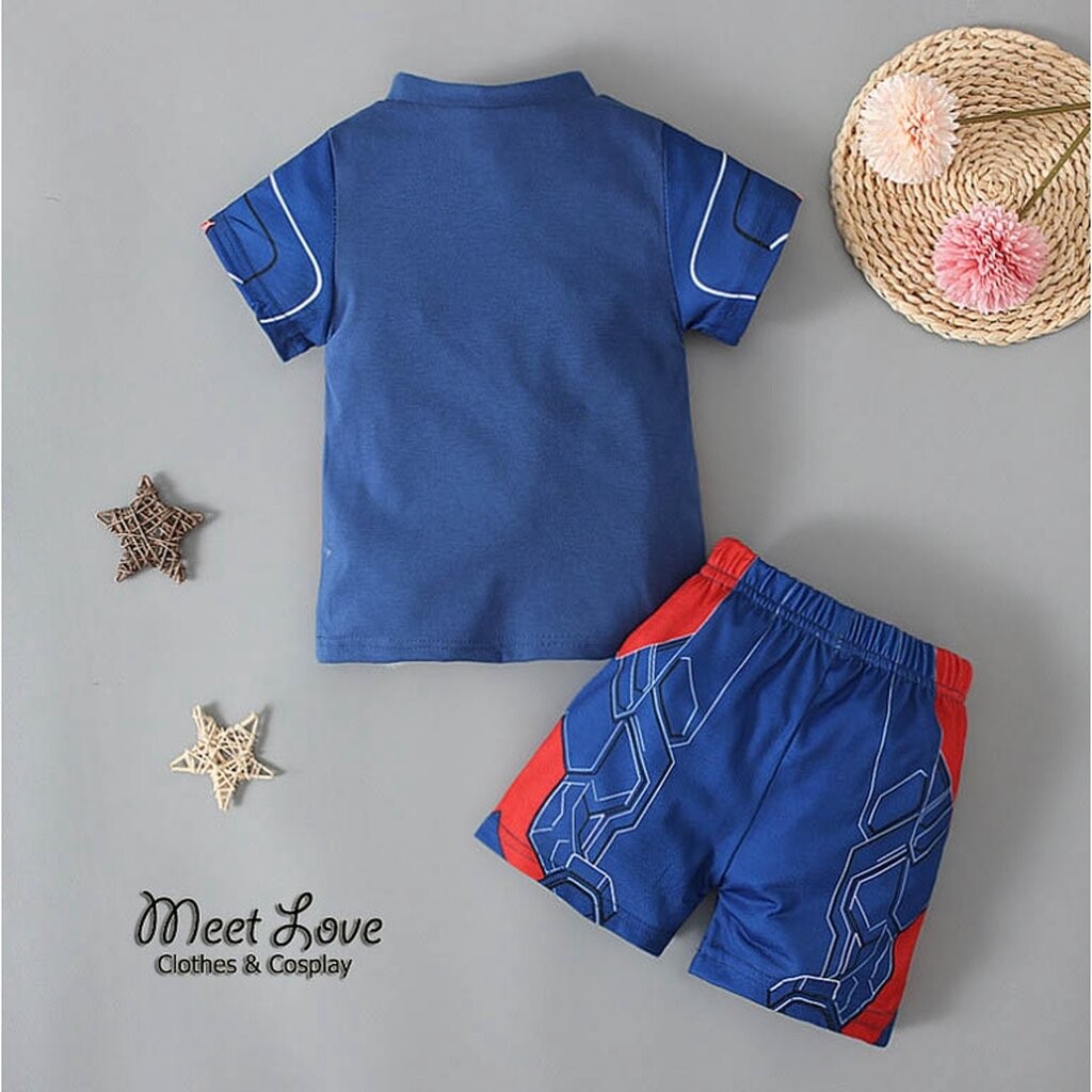ชุดแฟนซีเด็ก ชุดกัปตันอเมริกา ชุดซุปเปอร์ฮีโร่ Captain America ชุดฮีโร่แขนสั้น ขาสั้น ชุดกัปตัน ชุดลำลอง