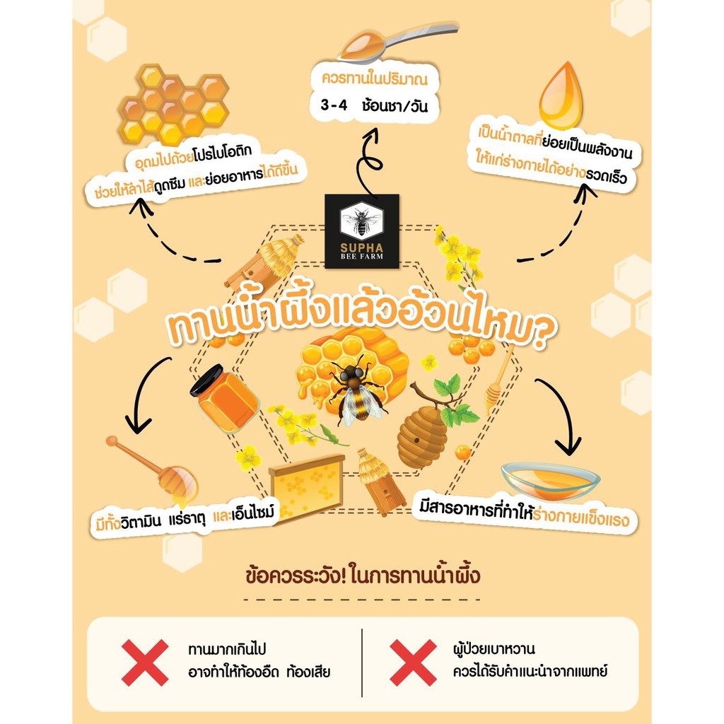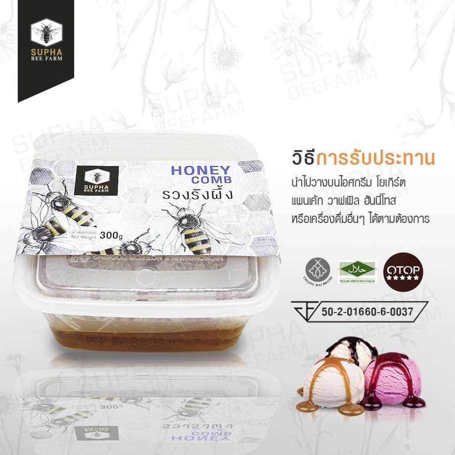 Supha Bee Farm รวงรังผึ้ง Honey Comb สุภาฟาร์มผึ้ง รวงรังผึ้งแท้ ขนาด 300 กรัม (300g)