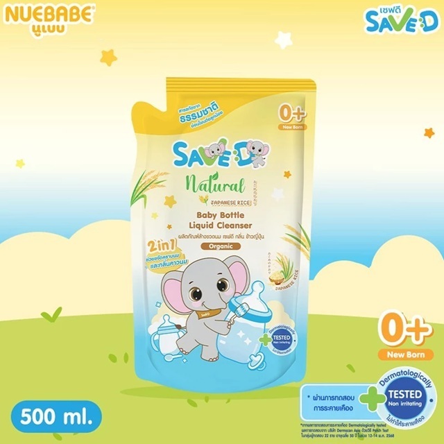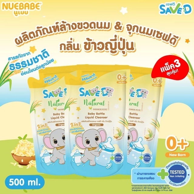 Save D เซฟดี ผลิตภัณฑ์ล้างขวดนมและจุกนม กลิ่นข้าวญี่ปุ่น ชนิดถุงเติม 500 มล. 3 ถุง