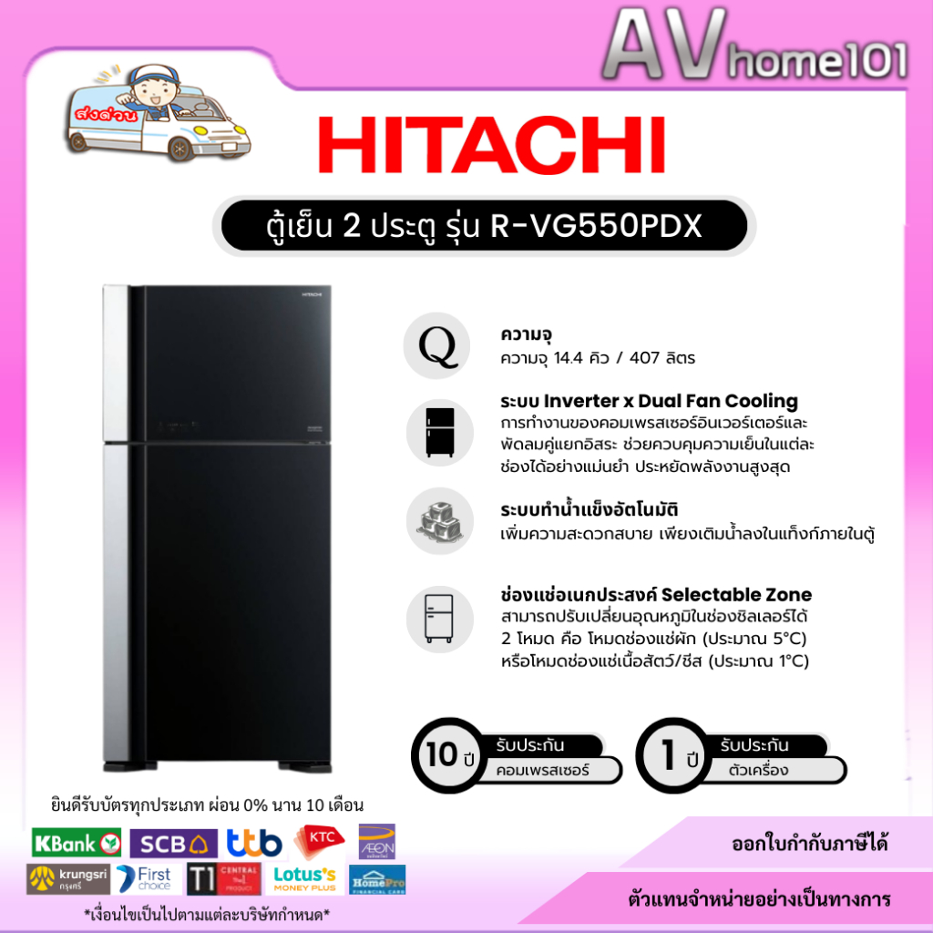 ตู้เย็น 2 ประตู HITACHI R-VG550PDX 19.4 คิว กระจกดำ อินเวอร์เตอร์
