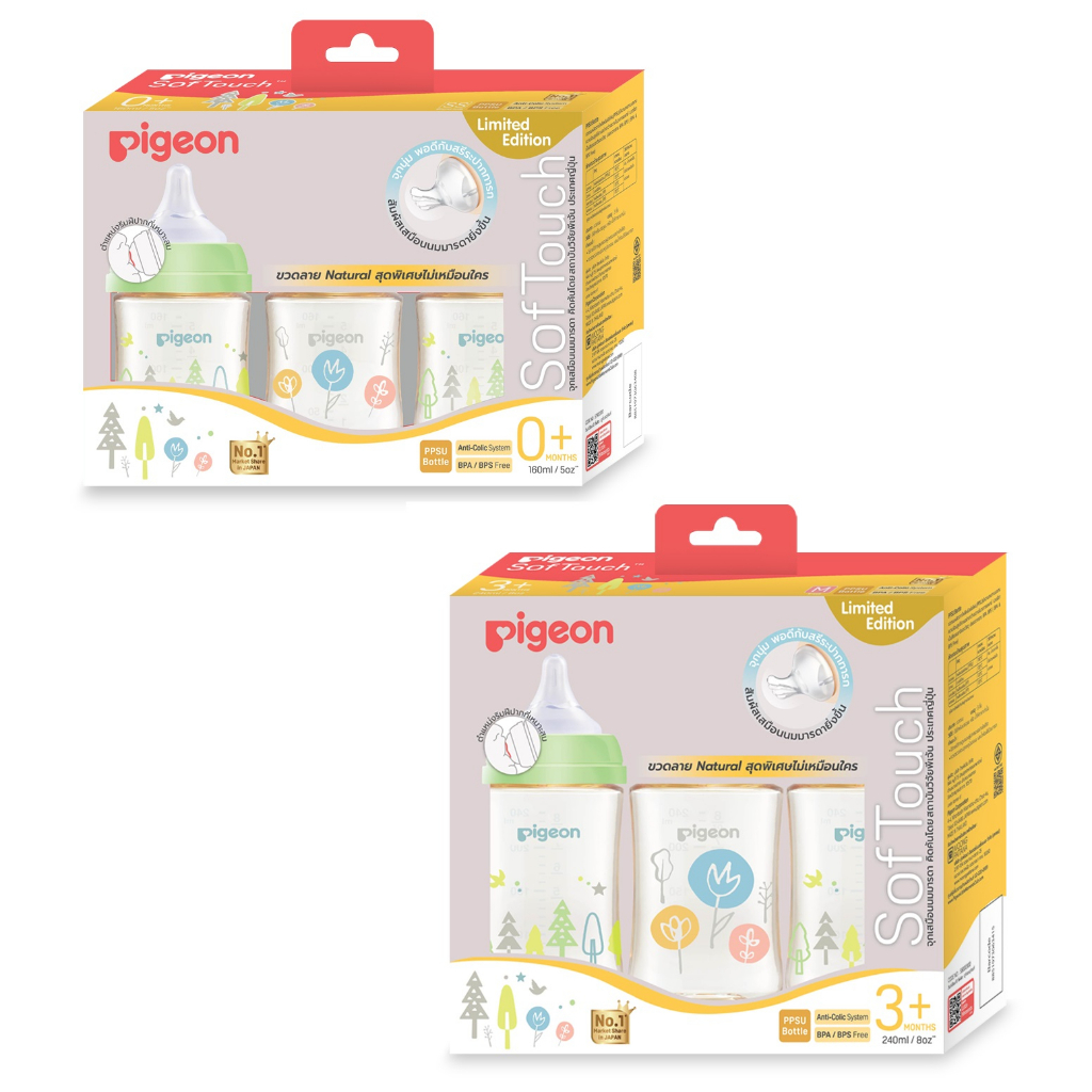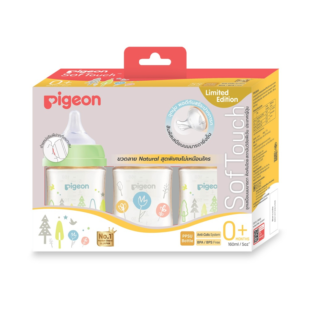 Pigeon พีเจ้น ขวดนมเสมือนการให้นมมารดา ppsu ลาย Natural รุ่น Limited Edition ขนาด 5 oz. / 8 oz. แพ็ค 3 ขวด