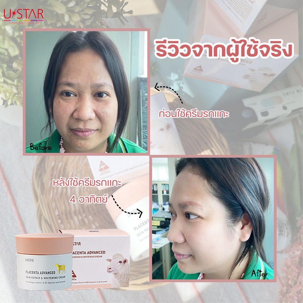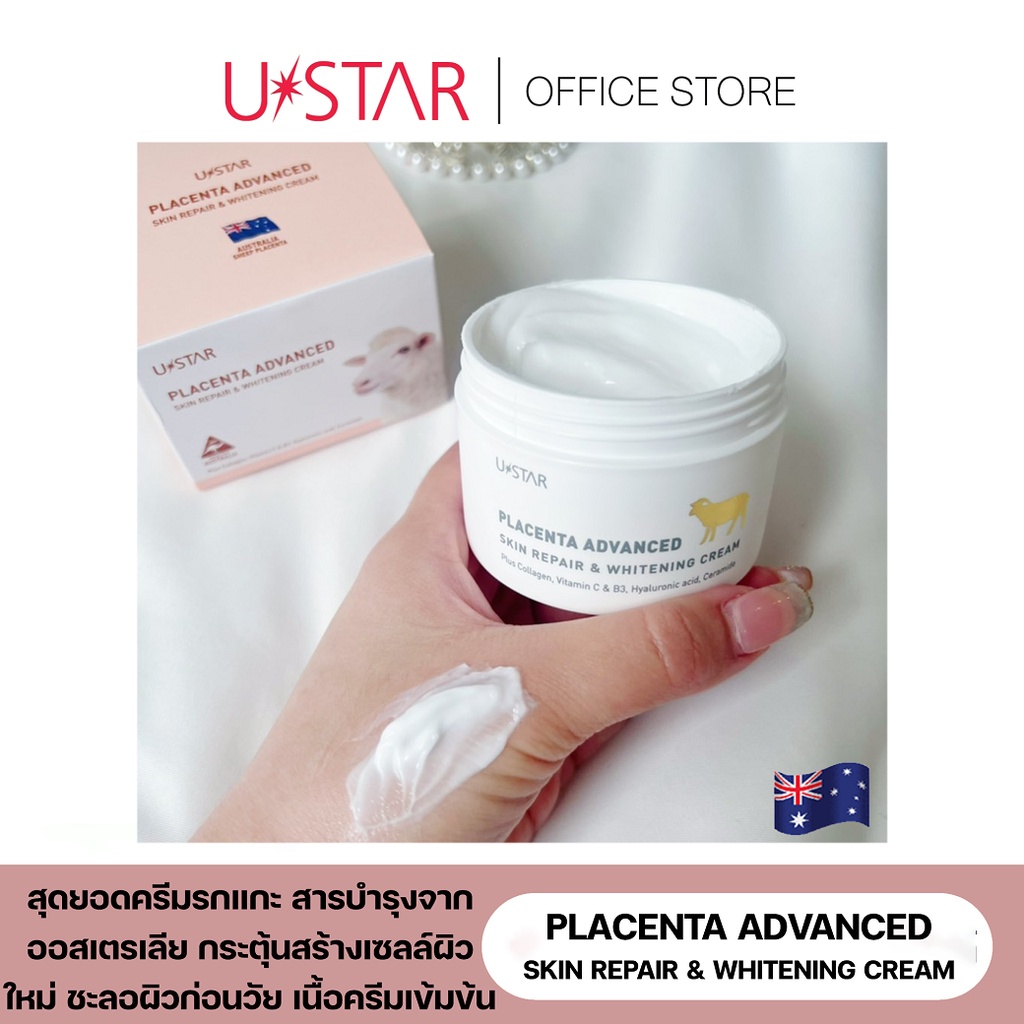 USTAR PLACENTA ADVANCED SKIN REPAIR & WHITENING CREAM (ครีมรกแกะ) ครีมบำรุงผิวหน้า ครีมทาหน้า