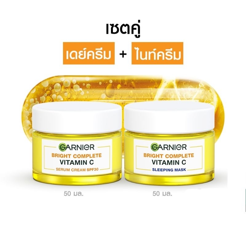 EXP.ปี2027 Garnier Bright Complete ชุดหน้าขาว มีให้เลือก เดย์ครีม 50มล และ ไนท์ครีม 50มล