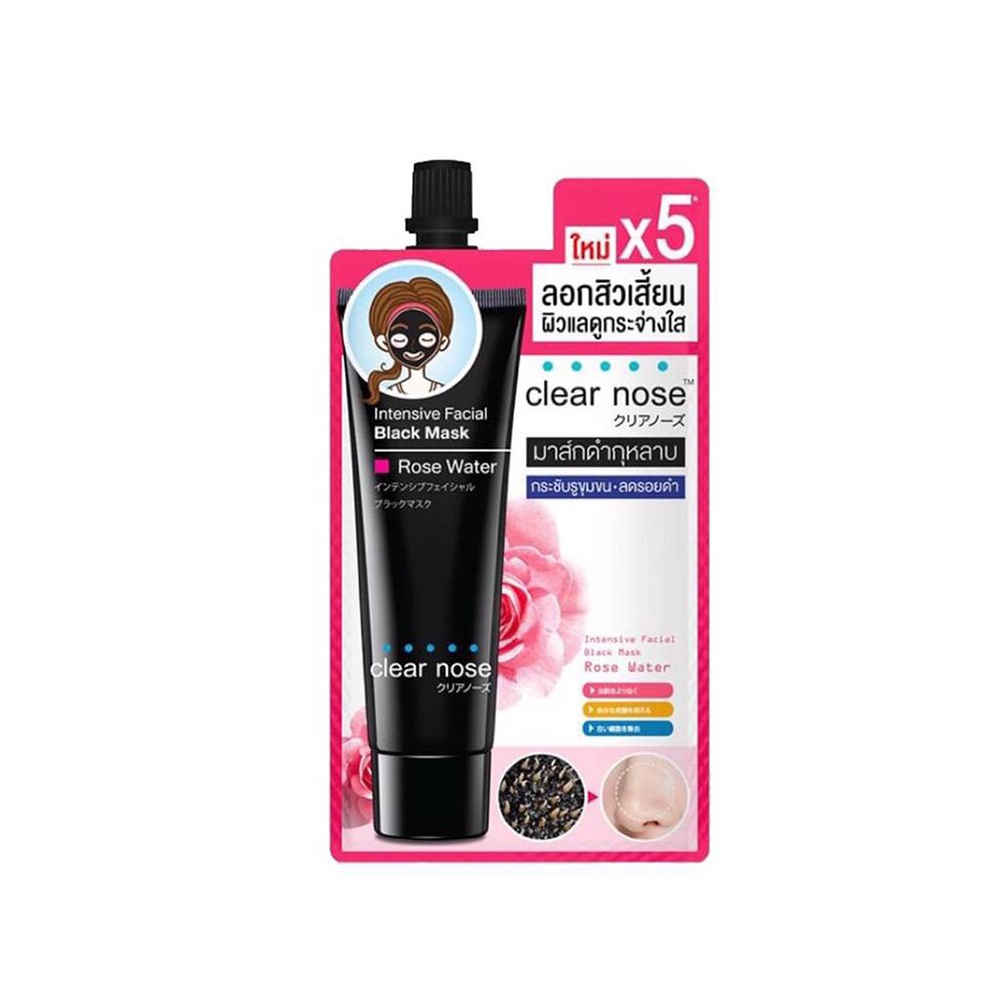 CLEAR NOSE Intensive Facial Black Mask Rose Water มาส์กลอกสิวเสี้ยน 12g