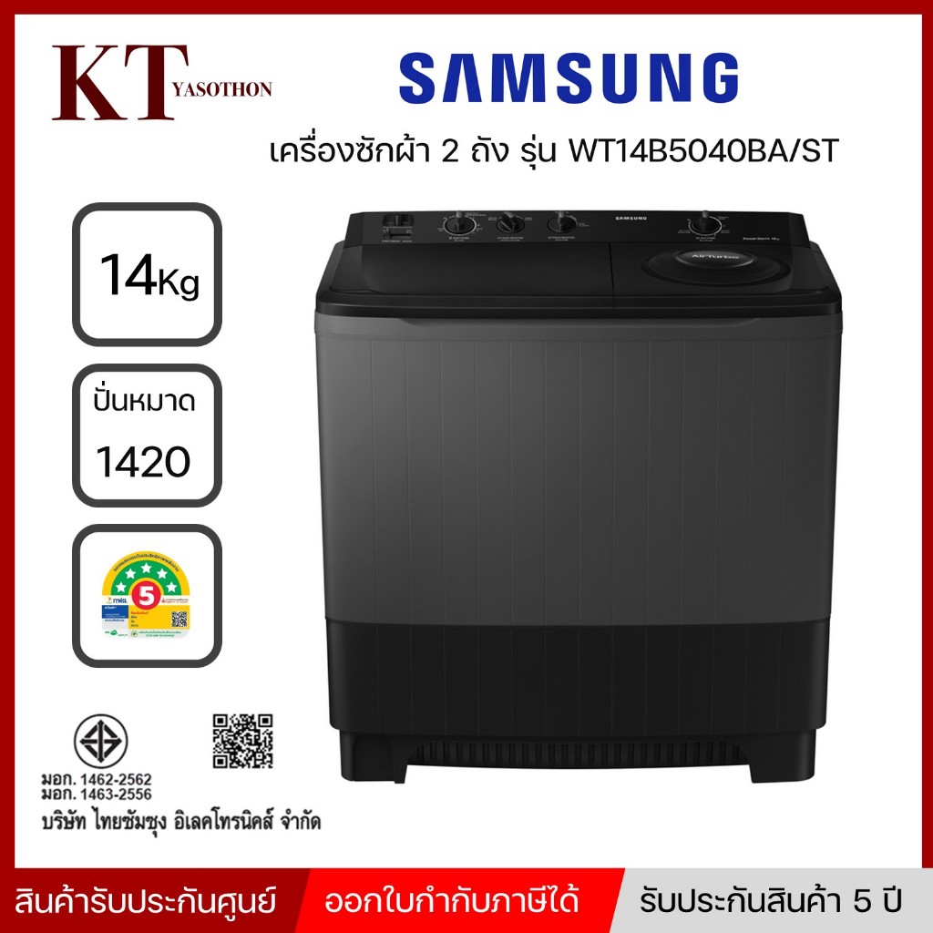 SAMSUNG ซัมซุง เครื่องซักผ้าถังคู่ ขนาด 14 กก. รุ่น WT14B5040BA/ST สีดำ