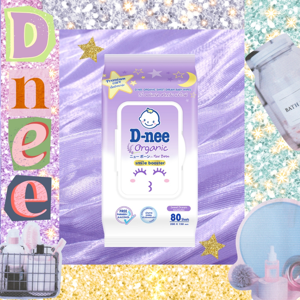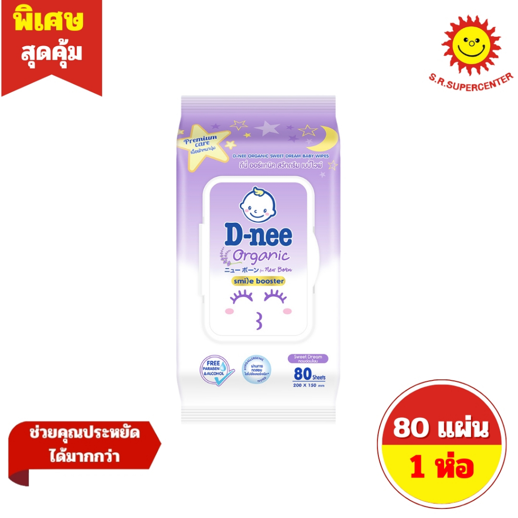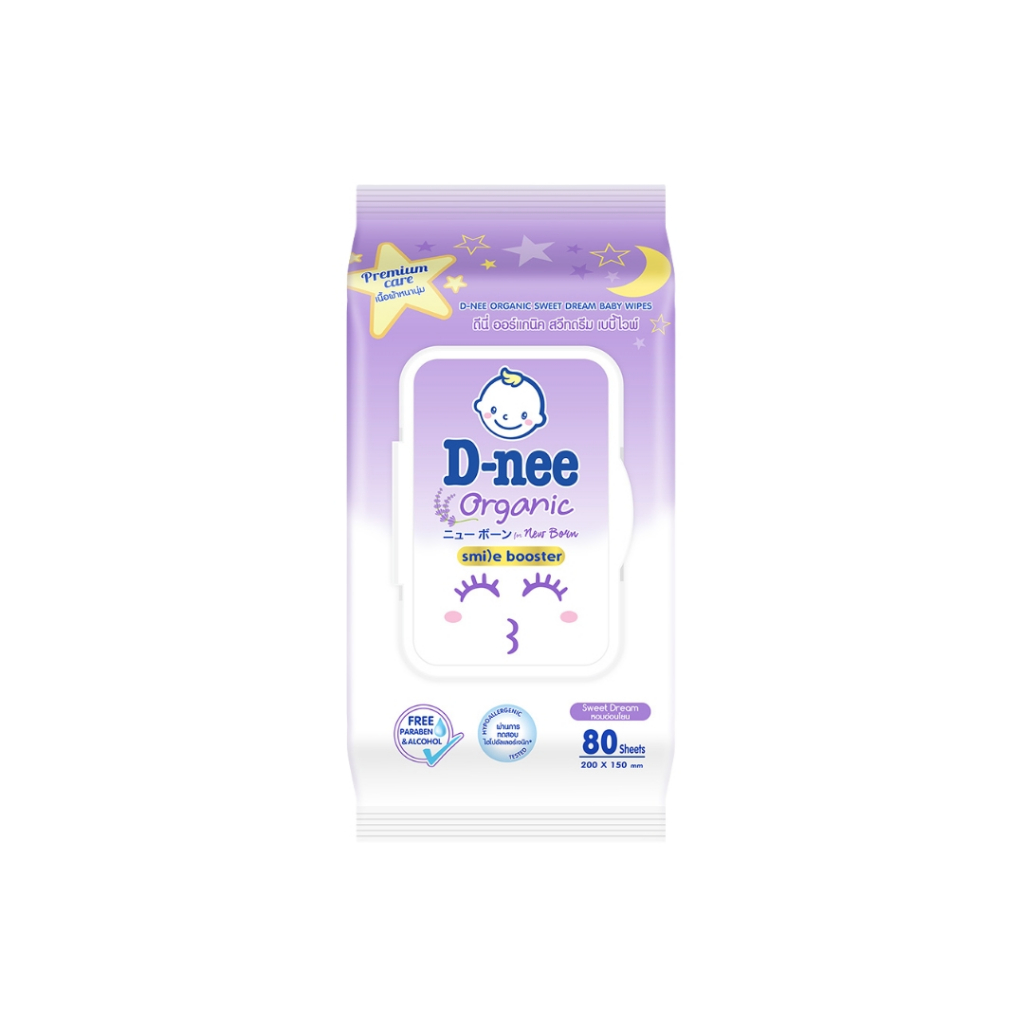 [ 1 ห่อ ] D-nee ดีนี่ ออร์แกนิค สวีทดรีม เบบี้ไวพ์ ผลิตภัณฑ์เช็ดทำความสะอาดผิว สูตรสวีทดรีม 80 แผ่น