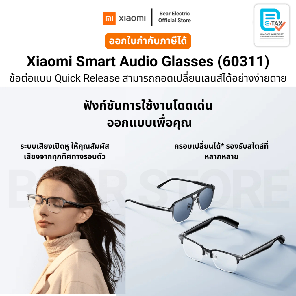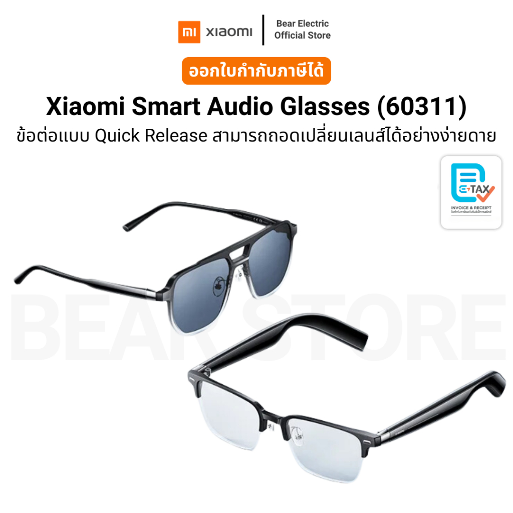 แว่นตา Xiaomi Smart Audio GlassesGlasses + ชุดแว่นกันแดด ถอดเปลี่ยนเลนส์ได้ ประกันศูนย์ไทย 1 ปี