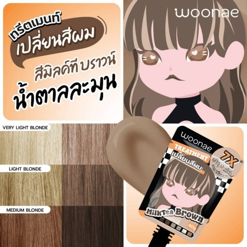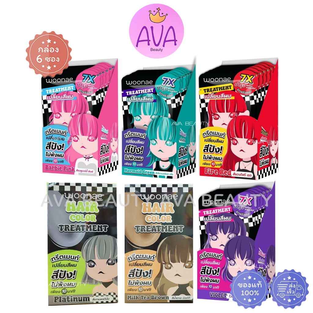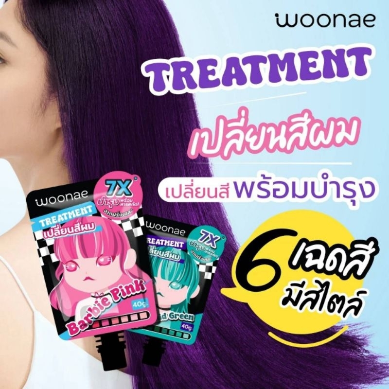 (6ซอง/กล่อง) Woonae hair color treatment วูเน่ แฮร์ คัลเลอร์ ทรีตเม้นต์ สีผม 40กรัม