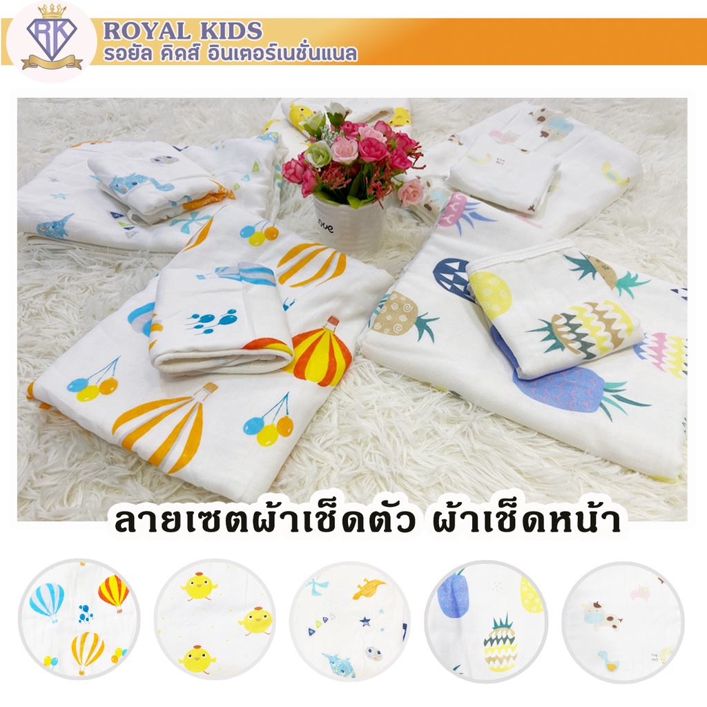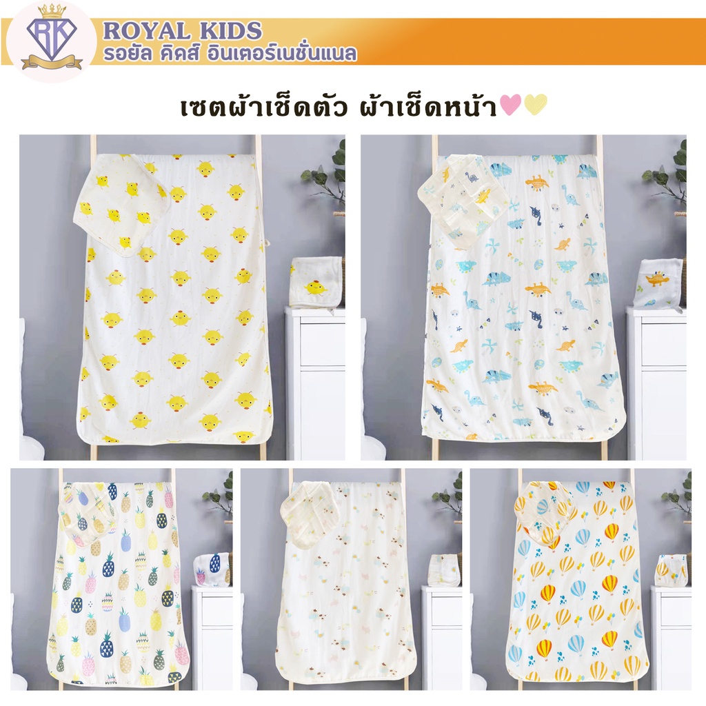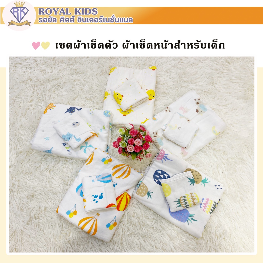 C0043 จับคู่ยกเซ็ต2ผืน ผ้าเช็ดหน้าและผ้าเช็ดตัวสำหรับเด็ก ยิ่งซักยิ่งนุ่ม ลายน่ารัก