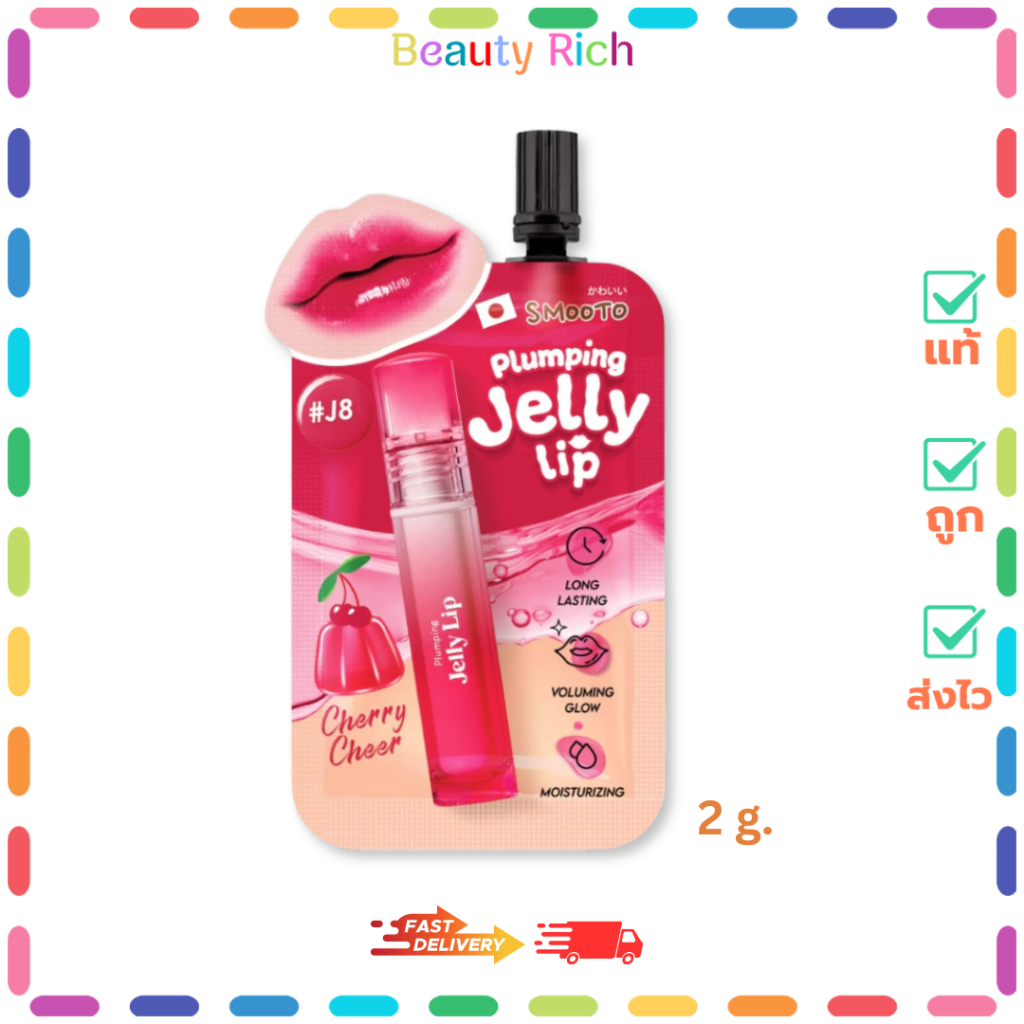 (1 ซอง) SMOOTO สมูทโตะ ลิปเจลลี่ #J8 Cherry Cheer (ปริมาณ 2 กรัม)