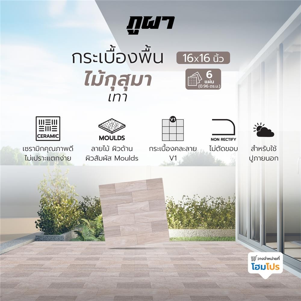 ภูผา กระเบื้องพื้น 16x16 นิ้ว ไม้กุสุมา เทา PM 0.96 ตร.ม. จัดส่งโดย HomePro