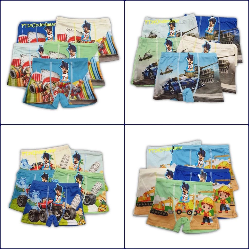 กางเกงในเด็กผู้ชาย แบบมีขา แพ็ค 10 ตัว คละสี ผ้านิ่ม ใส่สบาย ลายน่ารัก S-XXL
