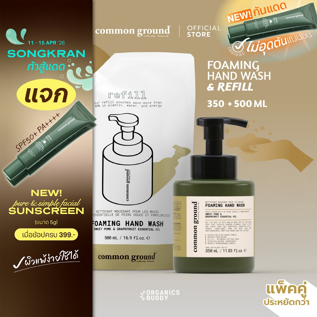 [แพ็คคู่] Common Ground Foaming Hand Wash Sweet Pome & Grapefruit Essential Oil + Refill โฟมล้างมือ
