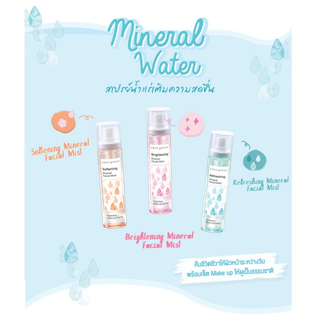 หมดอายุปี 27-28✨Cute Press คิวท์เพรส ไบรท์เทนนิ่ง มิเนรัล เฟเชียล มิสท์ 100 มล
