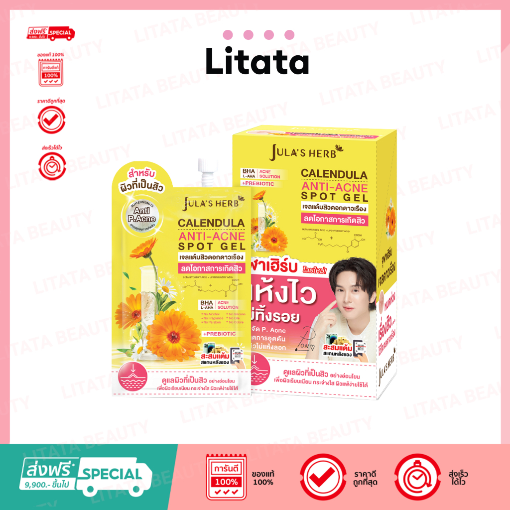 [กล่อง x6ซอง] จุฬาเฮิร์บ คาเลนดูล่า แอนติ-แอคเน่ สปอต เจล Jula's Herb Calendula Anti-Acne Spot Gel 6 มล.