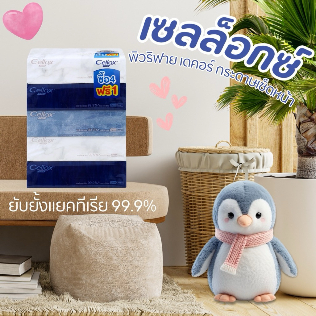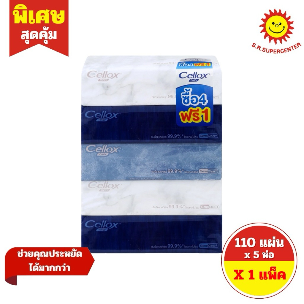 [ 1 แพ็ค ] Cellox เซลล็อกซ์ พิวริฟาย เดคอร์ กระดาษเช็ดหน้า สะท้อนความรู้สึกผ่านผิวสัมผัส ขนาด 110 แผ่น x 5 ห่อ