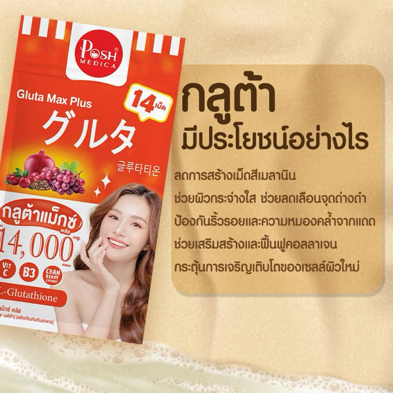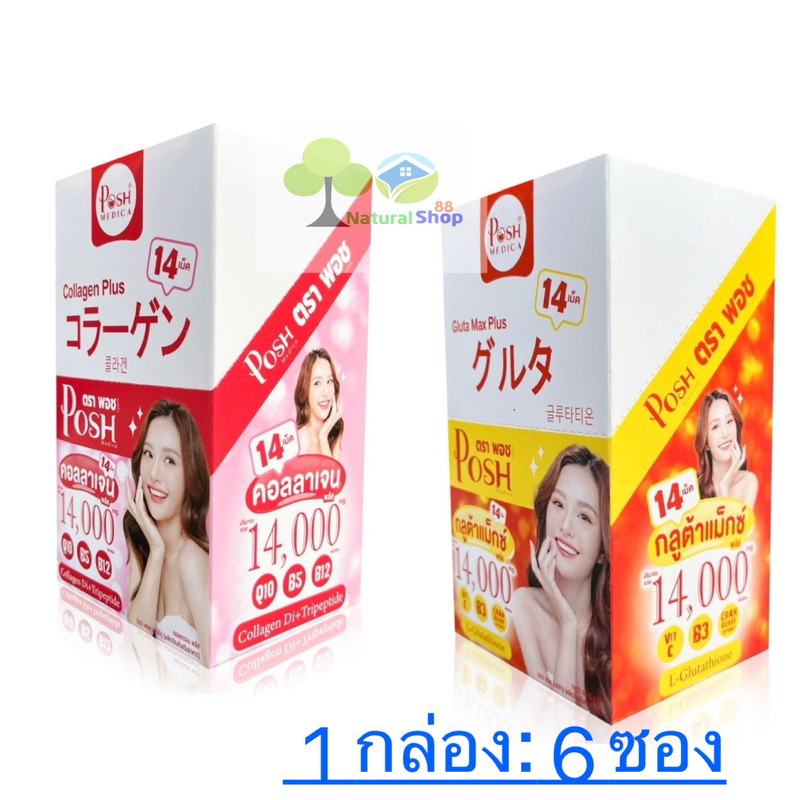 [ยกกล่อง=6ซอง]Posh Medica กลูต้า แม็กซ์ พลัส/คอลลาเจน พลัส ปริมาณ 14,000mg.✳️ใหม่