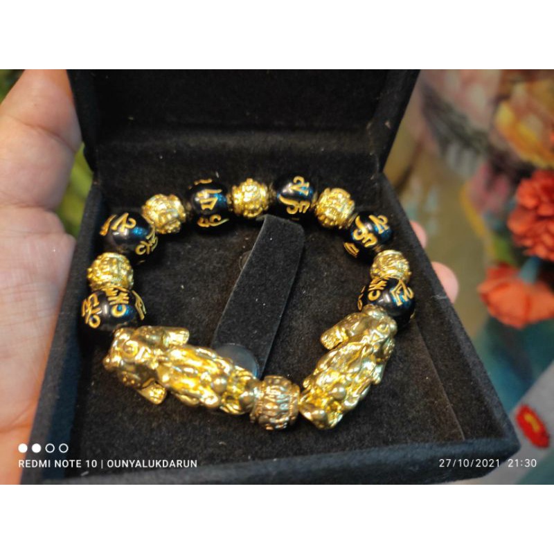 นำเข้า จากทิเบต กำไลปี่เซียะสีทอง2 ตัว แก้วสารพัดนึก ลงอักขระ คาถาทิเบต 6อักขระมงคล นำพาสิ่งมงคล ปลุกเสกในเทวาลัย Tibet