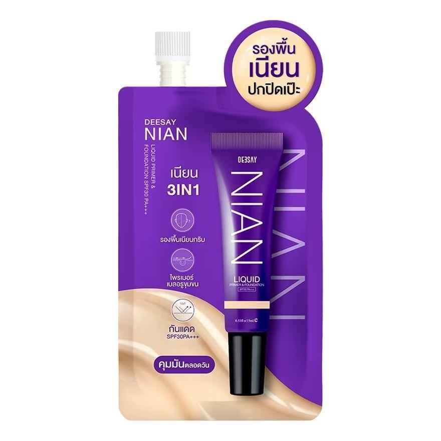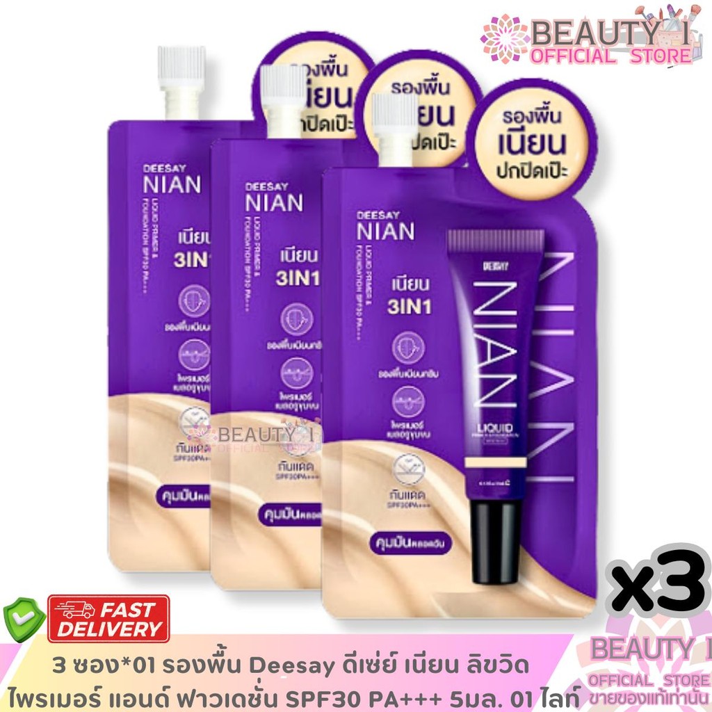 โปรสุดคุ้ม 3 ซอง*01 รองพื้น Deesay ดีเซ่ย์ เนียน ลิขวิด ไพรเมอร์ แอนด์ ฟาวเดชั่น SPF30 PA+++ 5มล. 01 ไลท์