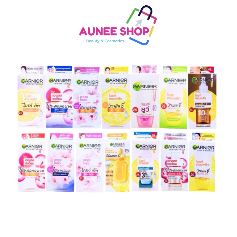 ส่งฟรี/มีไลฟ์ (กล่อง 6 ซอง) การ์นิเย่ ครีมซอง ไลท์ คอมพลีท/ซากุระ/เอจเลส/ยูวี/วิตามินซี ครบสูตร 7 มล.