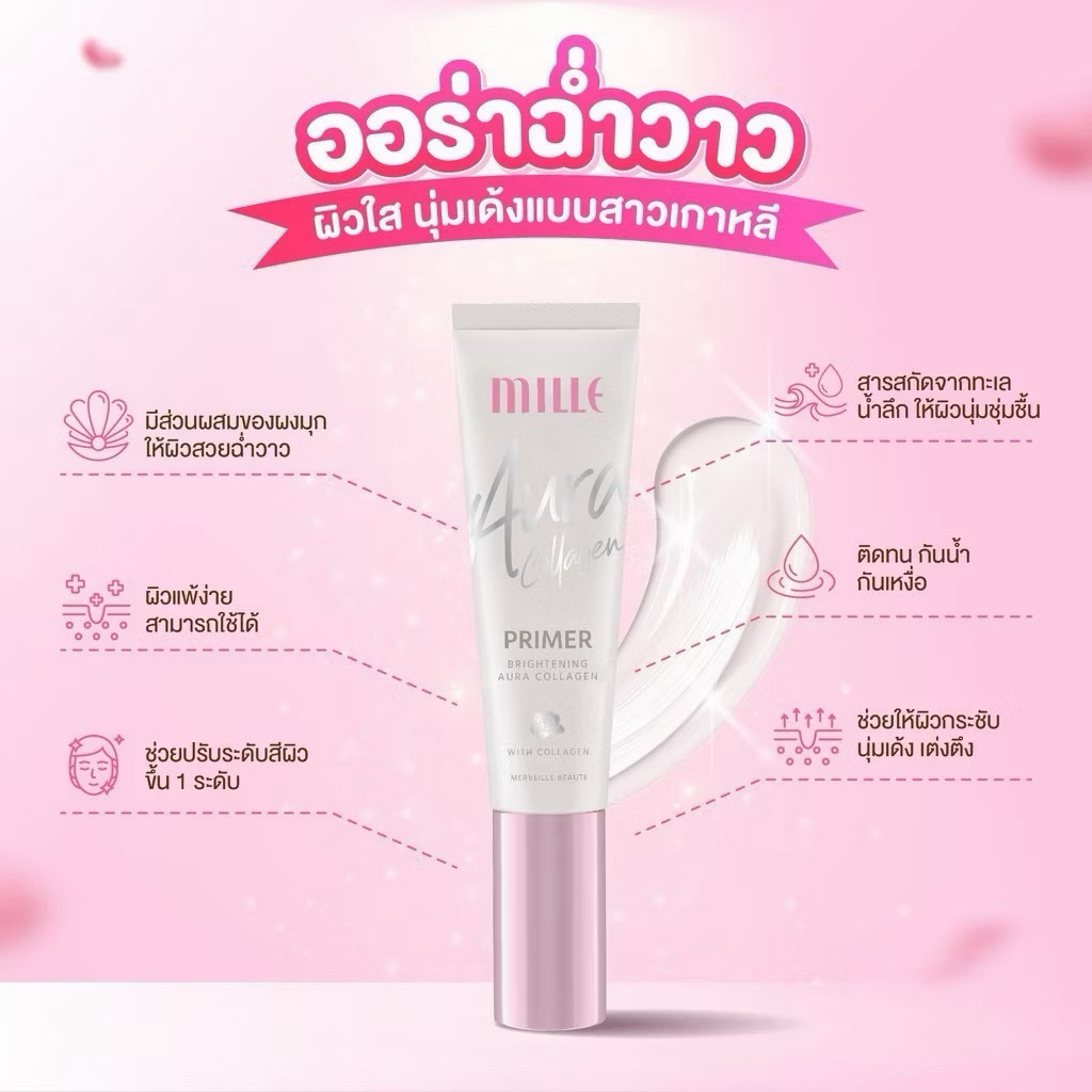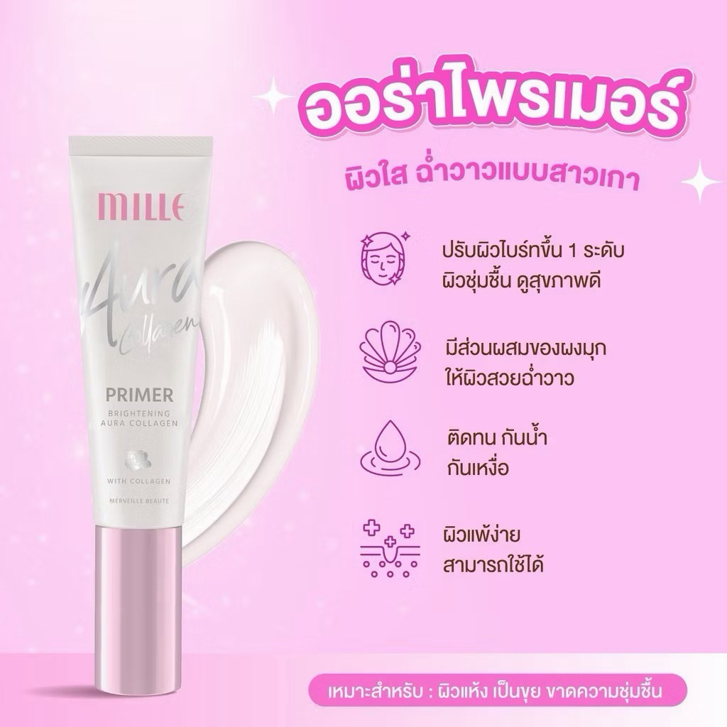 Mille ออร่า ไพรเมอร์ Aura Collagen หลอด 8 กรัม