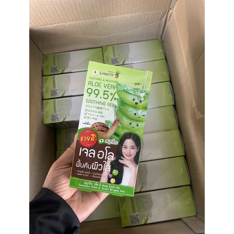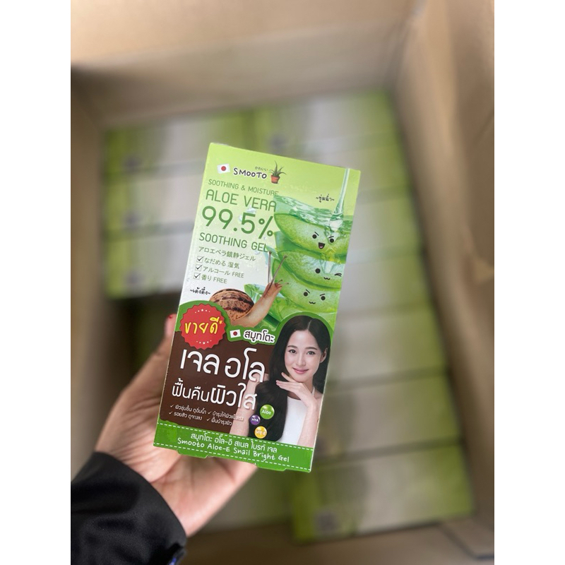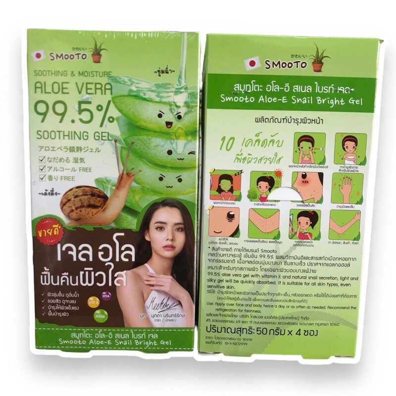 ยกกล่อง สมูทโตะว่านหางจระเข้ SMOOTO ALOE-E SNAIL BRIGHT GEL (1กล่อง4ซอง)