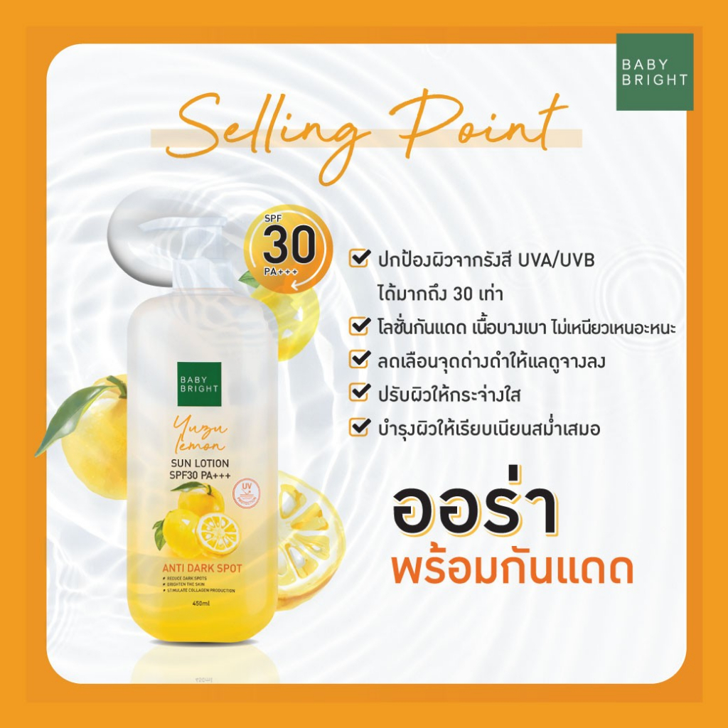 Baby Bright โลชั่นบำรุงผิวกาย ขวดปั้ม【กันแดด UVA/UVB】Body Lotion & Sun Lotion Spf30 Pa+++ 450ml
