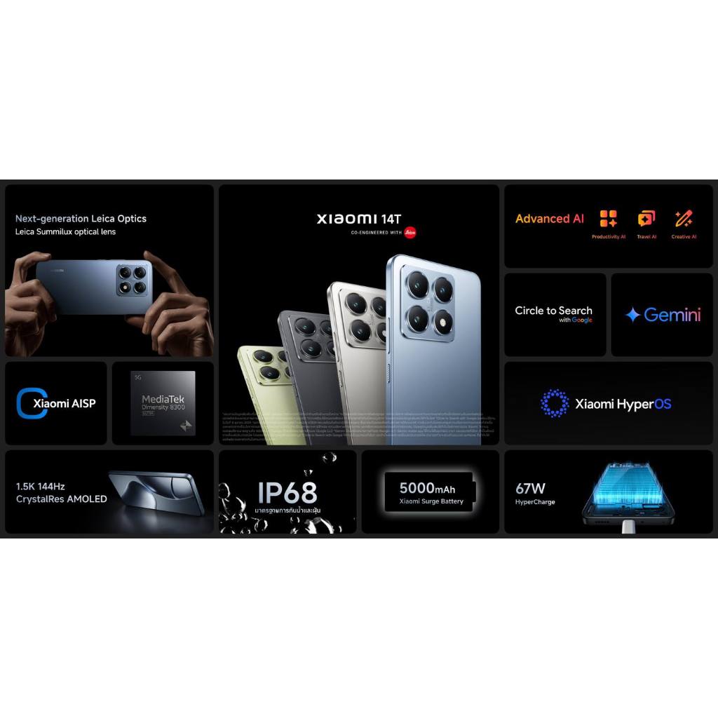 Xiaomi 14T 5G (12/256) / (12/512) แถมXiaomi 120W Charging Comboประกันศูนย์ไทย 20 เดือน [ หน้าจอ 6.67นิ้ว แบต 5000mAh ]