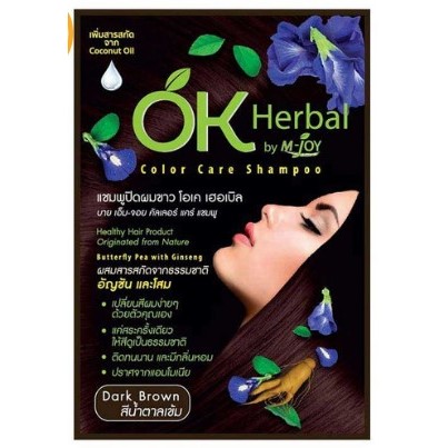 (12ซอง/กล่อง) OK Herbal โอเค เฮอเบิล แชมพูปิดผมขาว (สีน้ำตาลเข้ม) [0210]