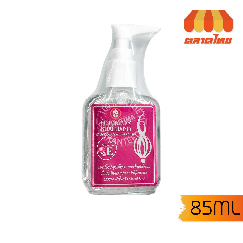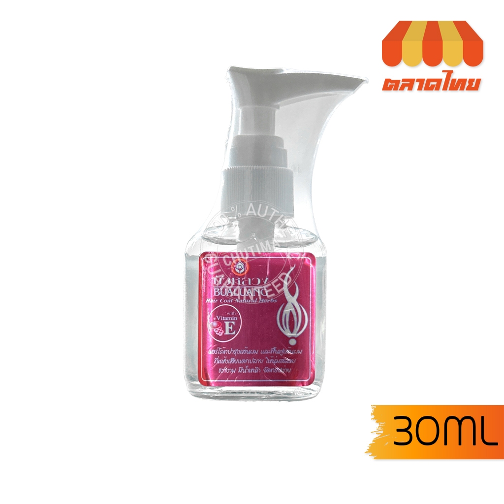 น้ำมันบำรุงผม บัวหลวง แฮร์โค้ท วิตามิน E สีชมพู Bualuang Hair Coat Natural Herbs