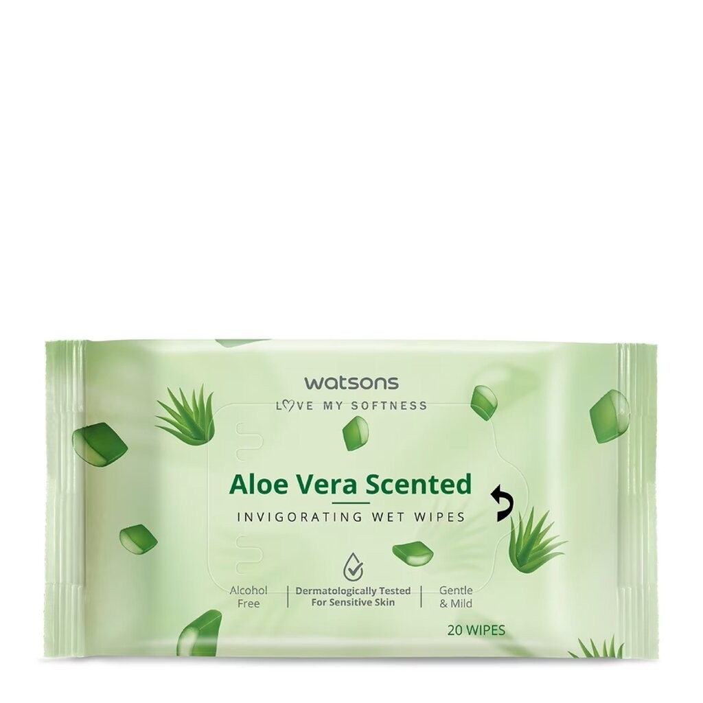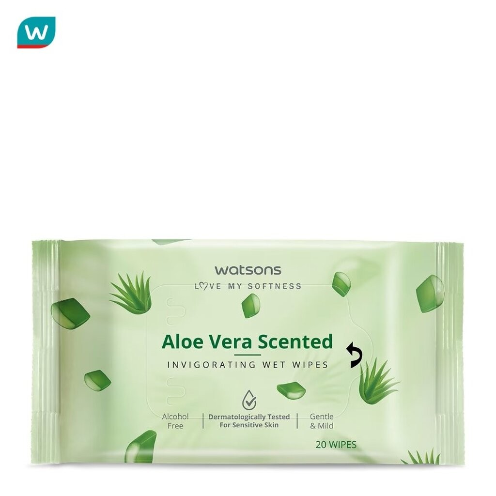 Watsons วัตสัน อะโล เวร่า เซ็นเท็ด อินวิกอเรทติ้ง เว็ท ไวพ์ 20 แผ่น.