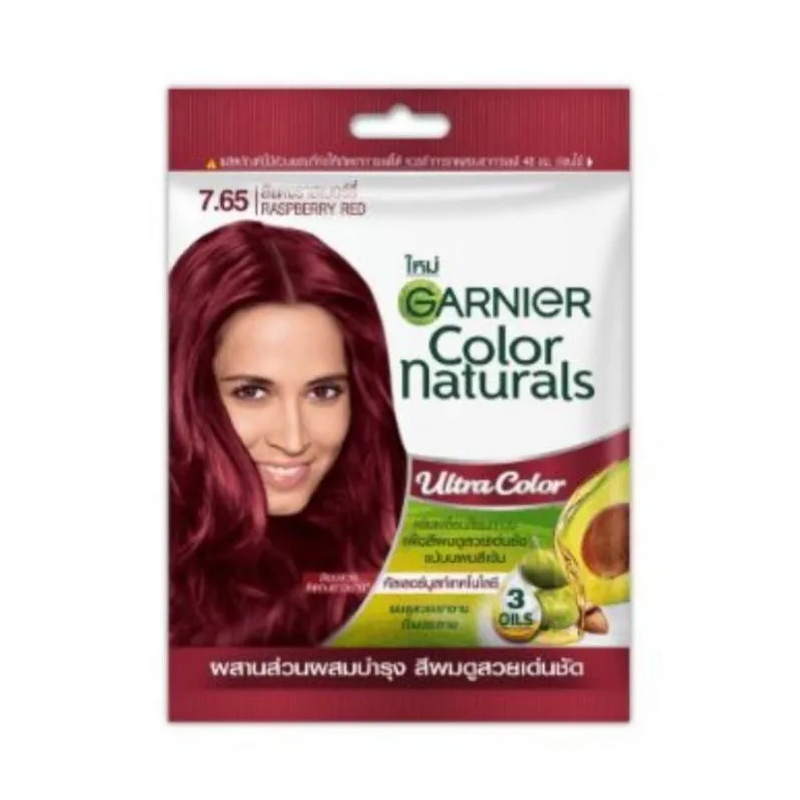 🌟 ครีมเปลี่ยนสีผมถาวร 7.65 สีแดงราสเบอร์รี่ การ์นิเย่ GARNIER COLOR NATURAL CREME RICHE 30กรัม+30มล.