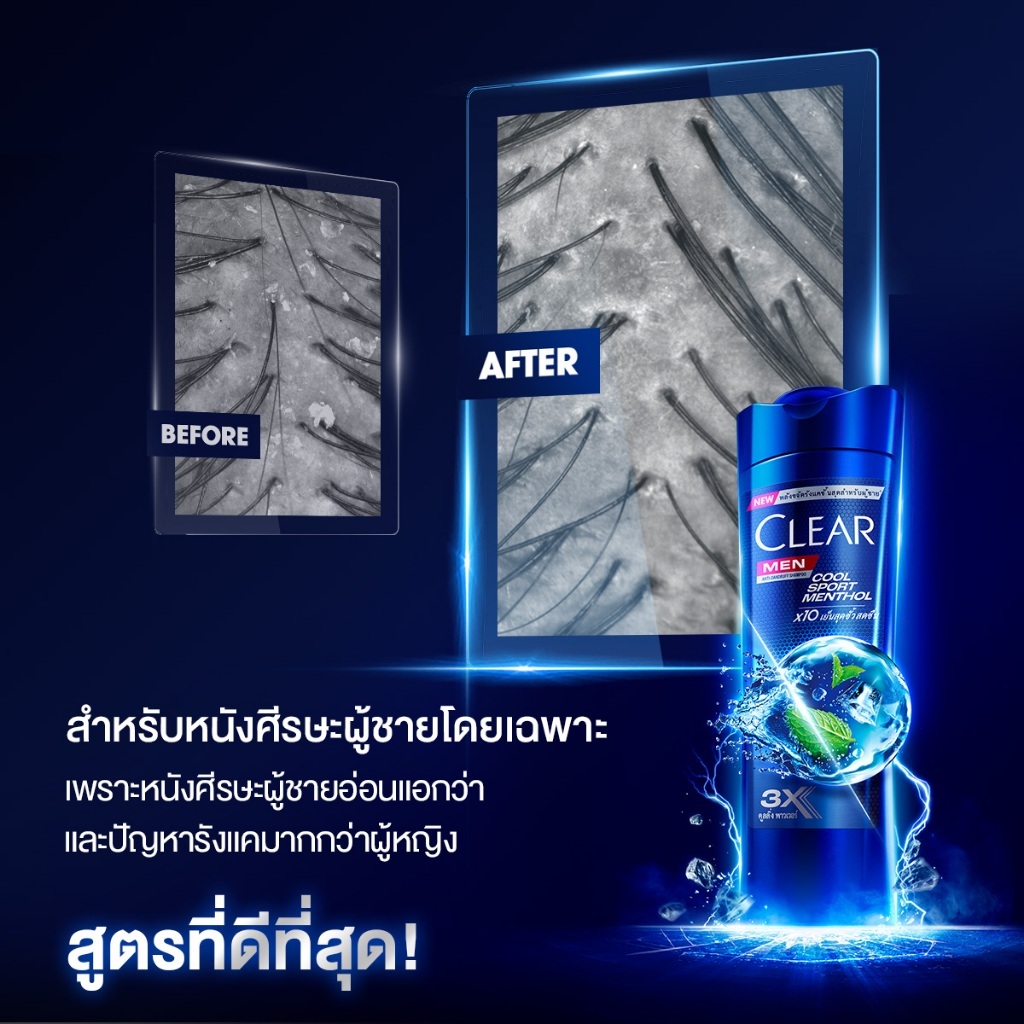 เคลียร์ แชมพูขจัดรังแค สูตรเย็น สำหรับผู้ชาย ผู้หญิง 370 มล. x2 CLEAR Cool Sport Menthol and Ice Cool Menthol 370 ml. x2