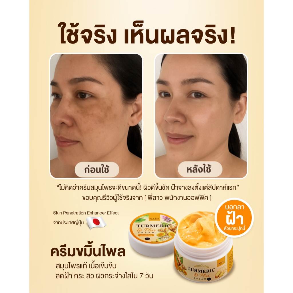 ครีมหน้าใสขมิ้นไพล ลดจุดด่างดำ ฝ้าแดด รอยสิว ผิวหมองคล้ำ ผสานไวท์มัลเบอร์รี่ + วิตามินอี เสริมเกราะผิวให้แข็งแรง