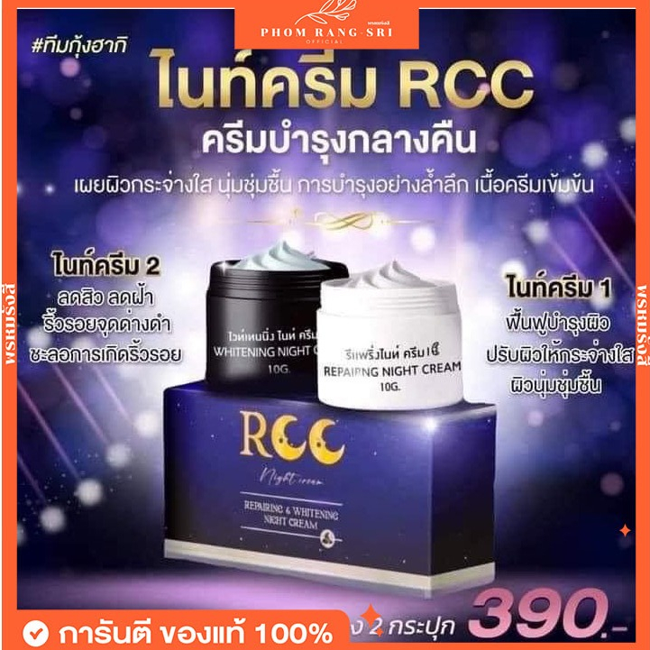 (พร้อมส่ง+ส่งฟรี)🖤🌙ไนท์ครีม RCC ไวท์เทนนิ่ง&รีแพริ่ง ลดริ้วรอย ลดสิว ฝ้า กระ Whitening And Repairing Night Cream