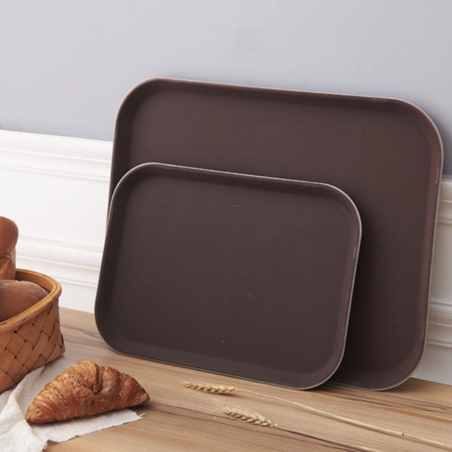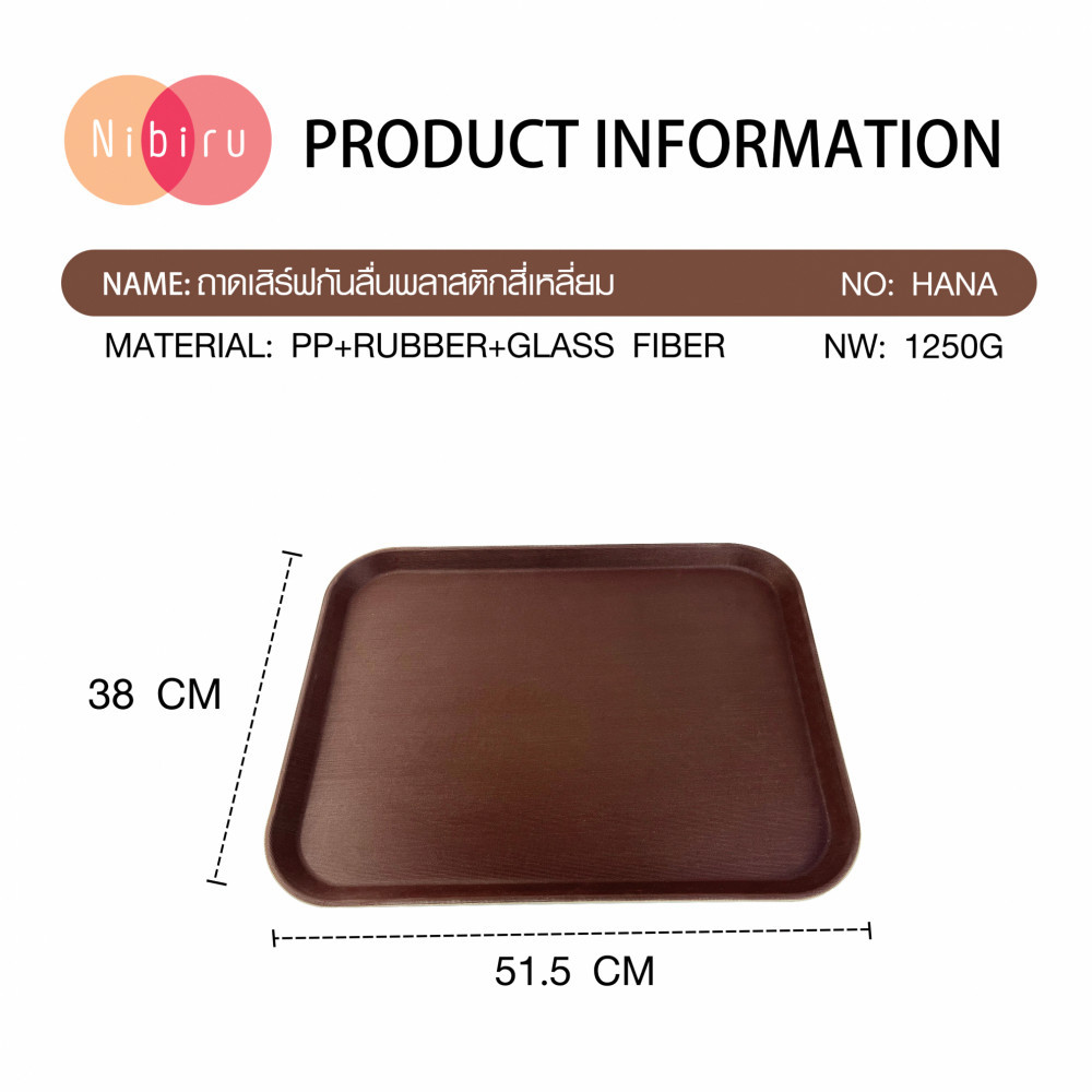 GlobalHouse NIBIRU ถาดเสิร์ฟกันลื่นพลาสติกสี่เหลี่ยม 38x51.5x2 ซม. HANA สีน้ำตาล สินค้าของแท้คุณภาพดี