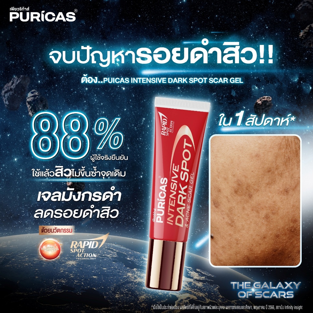 Puricas Intensive Dark Spot & Acne Scar gel เพียวริก้าส์ อินเทนซีฟ ดาร์กสปอต แอคเน่ สการ์ เจล [3 กรัม] [1 หลอด] เจลลดรอย