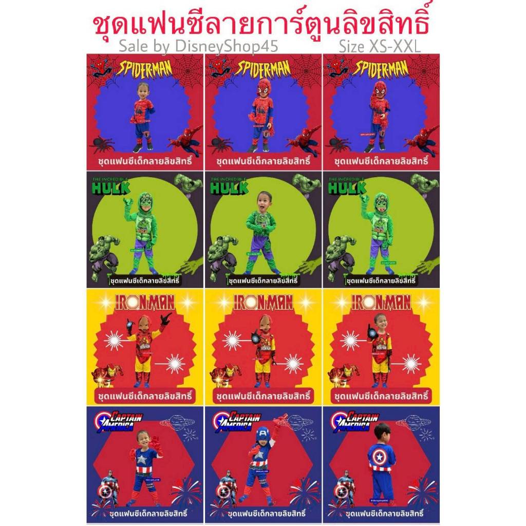 พร้อมส่ง ชุดแฟนซี ซุปเปอร์ฮีโร่ ลิขสิทธิ์แท้ สไปเดอร์แมน กัปตันอเมริกา ฮัล์ค สำหรับเด็ก