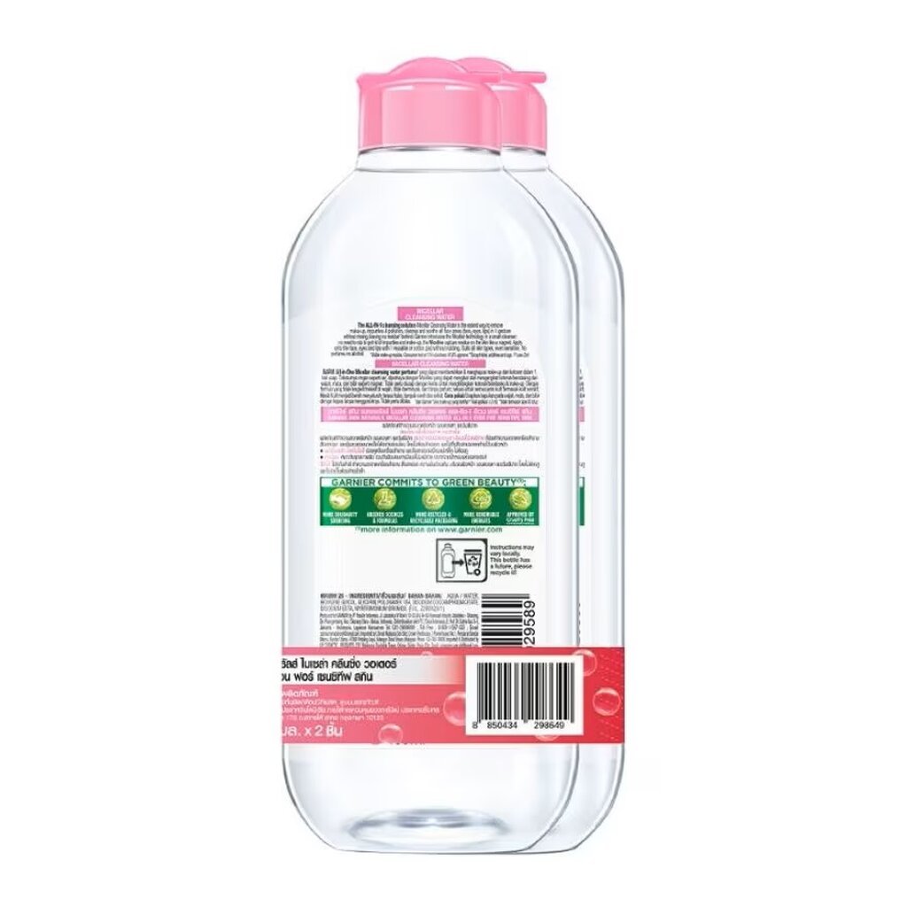 Garnier การ์นิเย่ ไมเซล่า คลีนซิ่ง วอเตอร์ ออล-อิน-1 อีเวน ฟอร์ เซนซิทีฟ สกิน 400 มล.แพ็คคู่