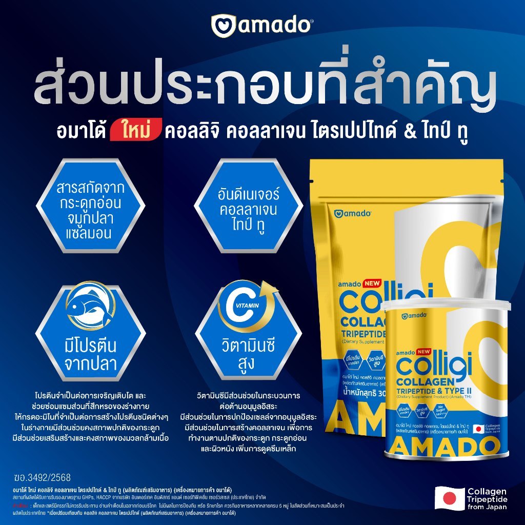 Amado Colligi Collagen อมาโด้ คอลลิจิ คอลลาเจน [คอลลิจิ แบบกระปุก - 100 กรัม] [1 กระปุก] สูตรใหม่