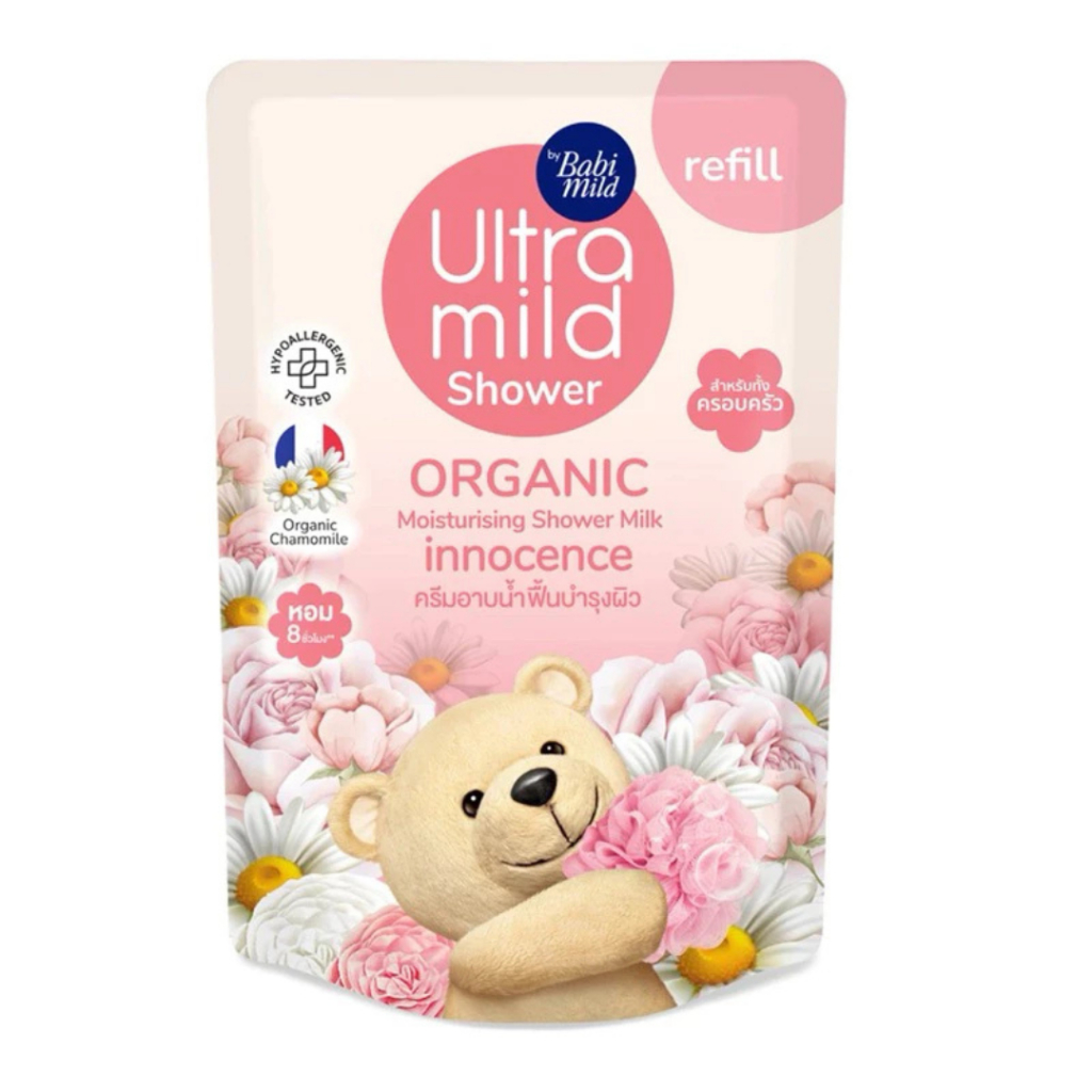 Babi Maid Ultra Mild Organic ครีมอาบน้ำเบบี้มายด์ อัลตร้ามายด์ ออร์แกนิค ชาวเวอร์ มิลค์ สูตรน้ำนม แบบถุงเติม 380 มล.