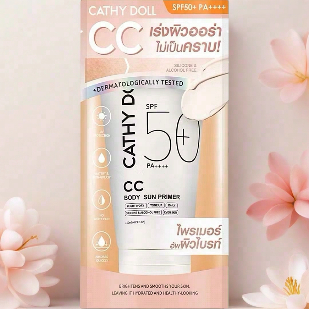 ส่งฟรี/มีไลฟ์ CATHYDOLL CC Body Sun Primer SPF50+ PA++++ 50/140ml ซีซีบอดี้ ซัน ไพรเมอร์ เอสพีเอฟ50+ พีเอ++++