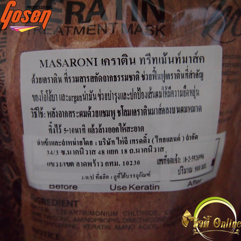 มาเซโรเน่ เคราติน ทรีทเม้นท์มาส์ค Masaroni Keratin Treatment Mask 500 ml