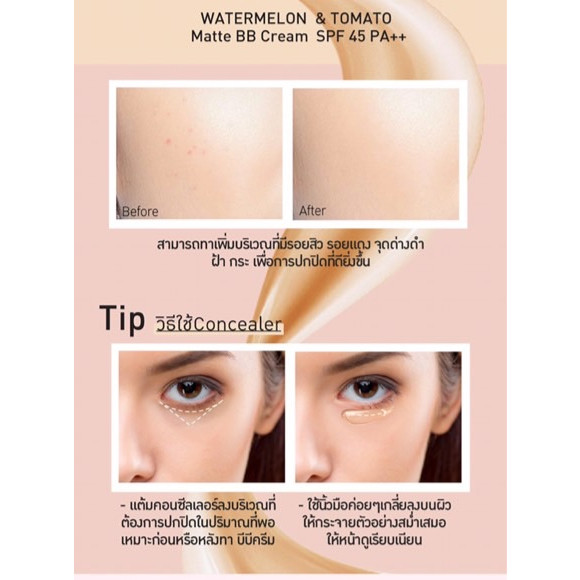 (1ซอง) Baby Bright BB Watermelon & Tomato Matte BB Cream SPF45 PA++
