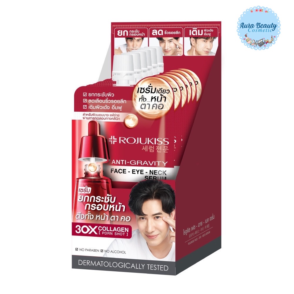 (6ซอง/กล่อง) Rojukiss Face Eye Neck Serum 8ml. โรจูคิส เซรั่ม หน้า ตา คอ