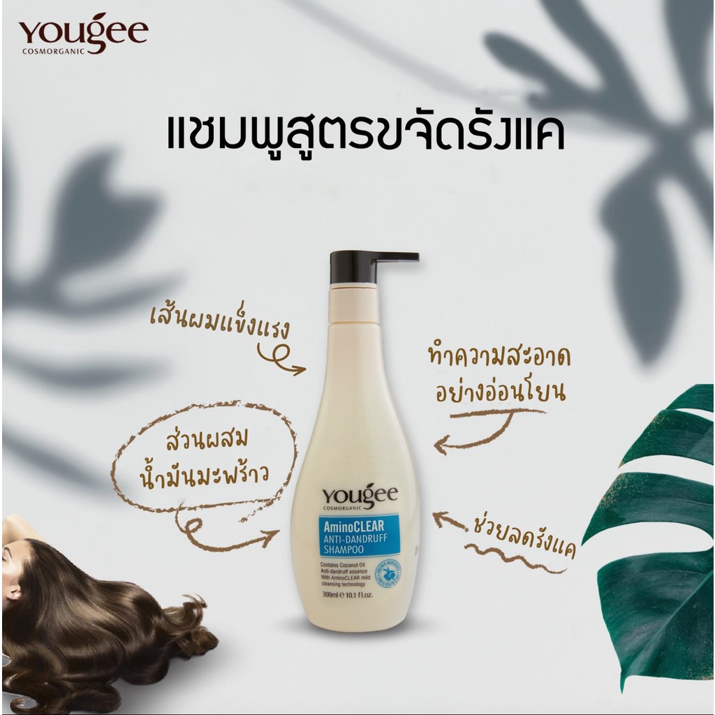 ยูจี แชมพู ขจัดรังแค 300ml Yougee AminoClear Anti-Dandruff Shampoo (ขวดขาวฟ้า) ผมแข็งแรง และลดความมัน บนหนังศีรษะ