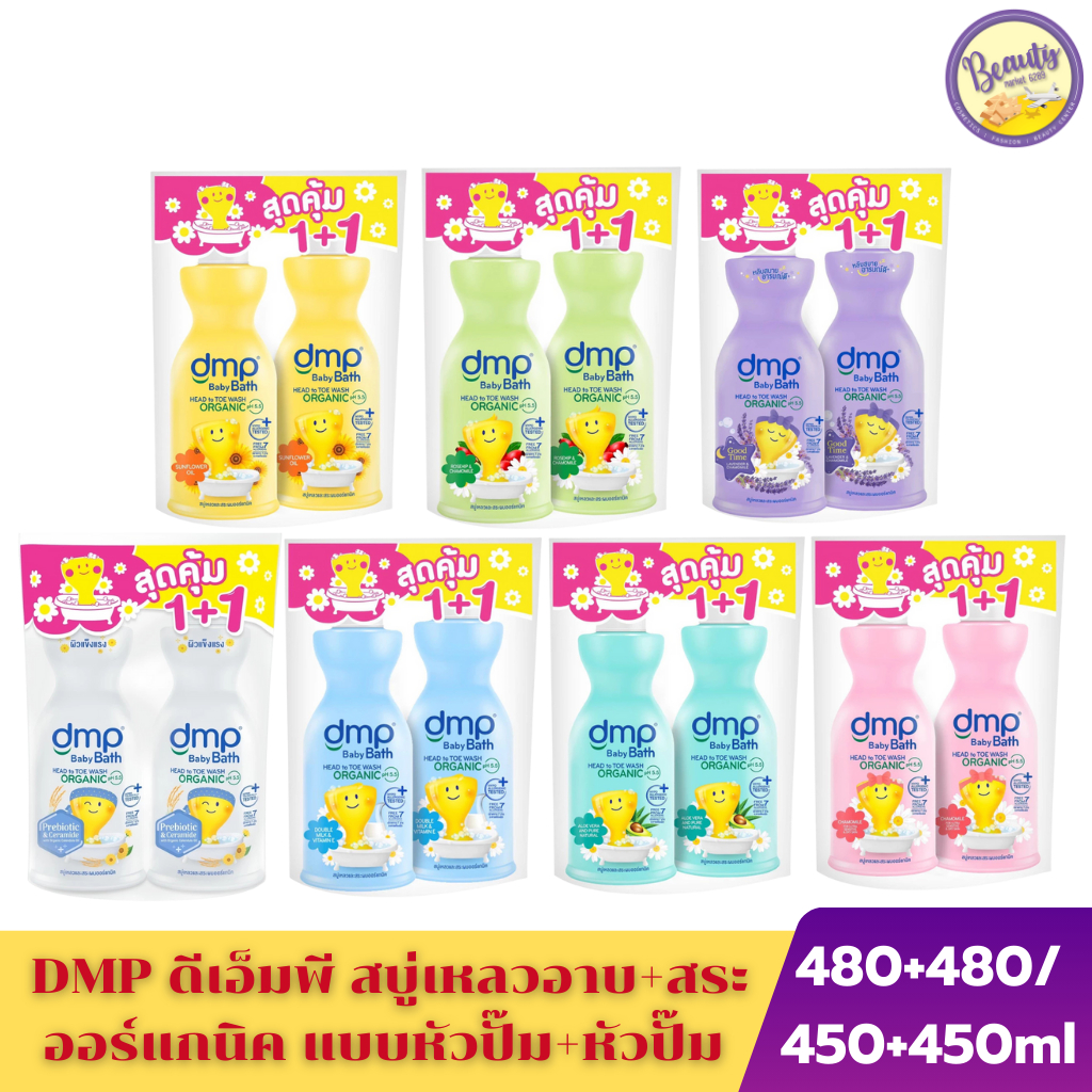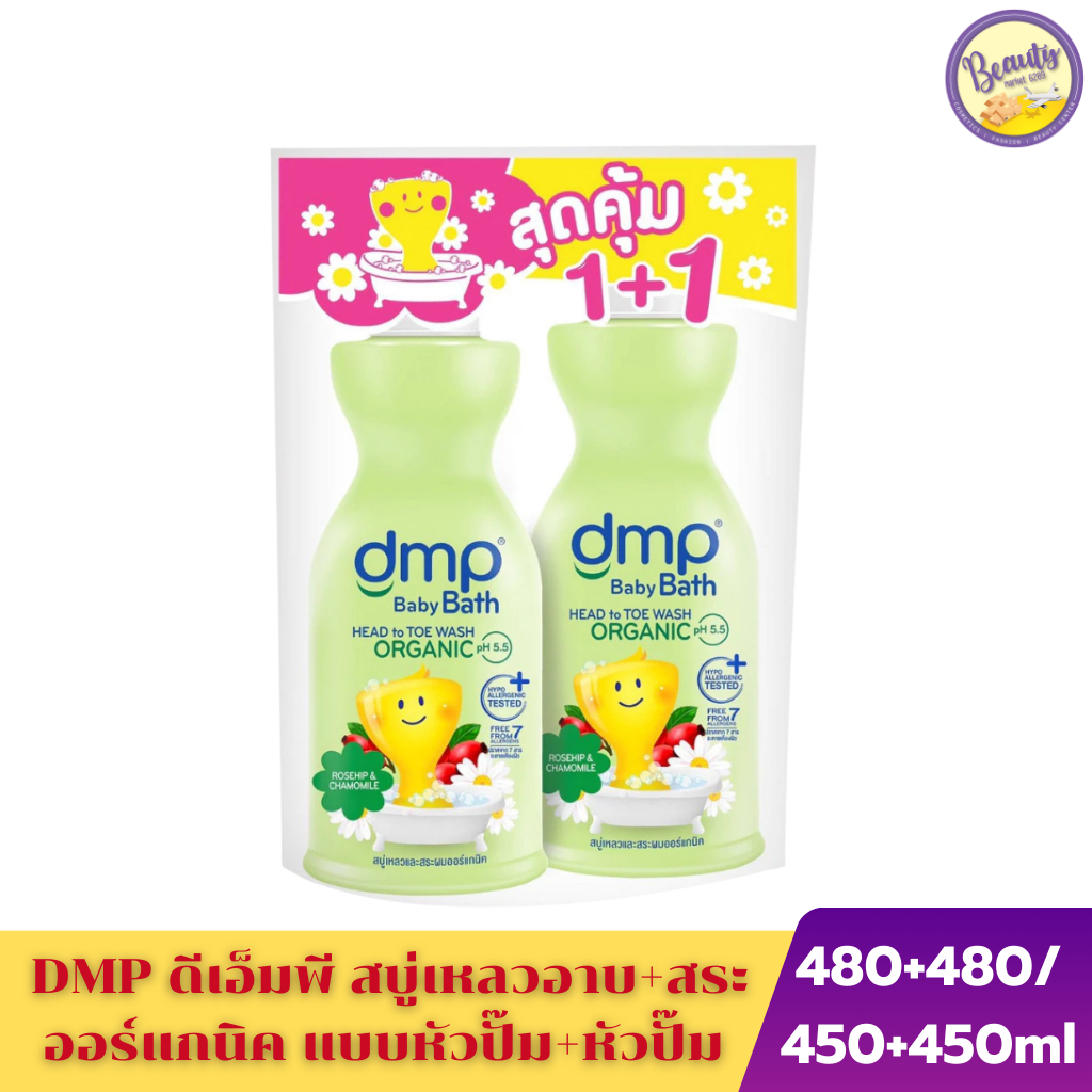 (แพ็คคู่)DMP baby bath head to toe wash organic 480+480ml / 450+450ml ดีเอ็มพี เบบี้ บาร สบูเหลวและสระผมออรแกนิค