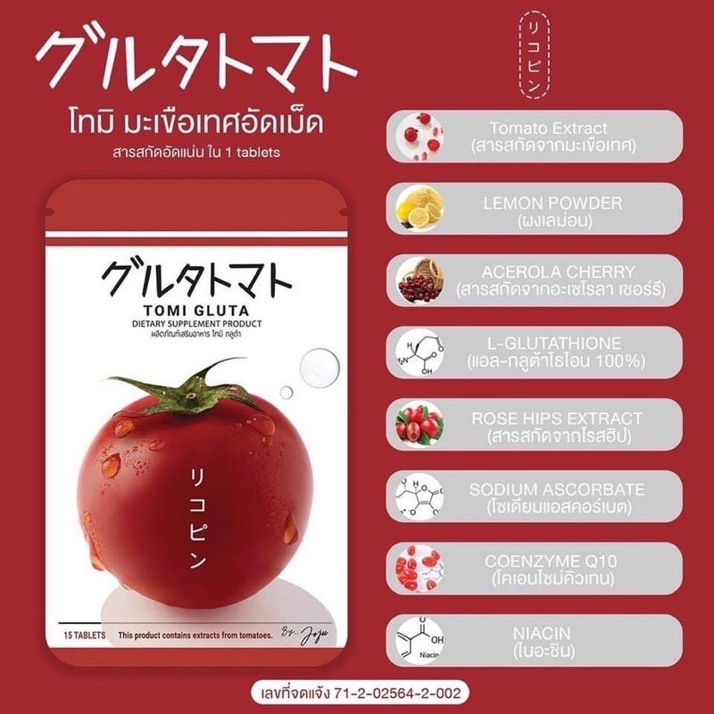(พร้อมส่ง | ส่งฟรี📍) ของแท้💯 โทมิกลูต้า มะเขือเทศอัดเม็ด Tomi gluta 1 ซอง 15 เม็ด